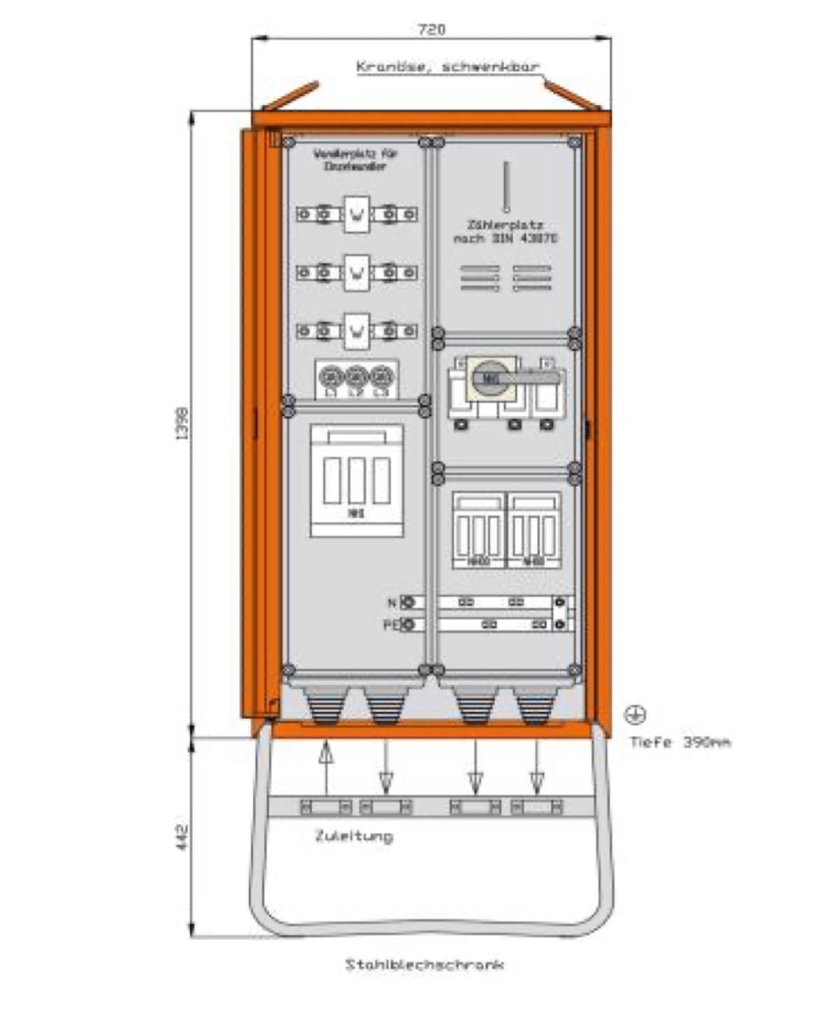 Typ: Anschlussschrank für Baustrom mit Wandlermessung
